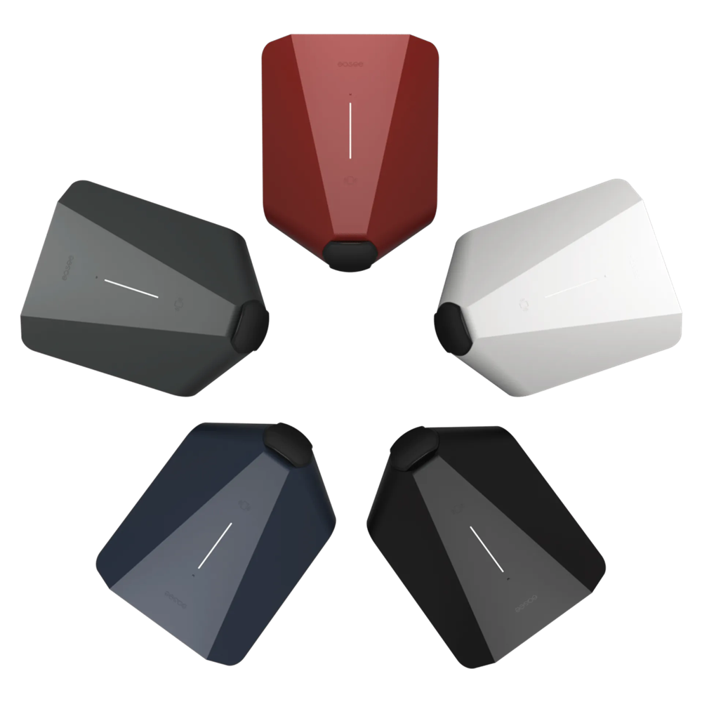De Easee laadpaal ondersteunt load balancing en is verkrijgbaar in 5 hippe kleuren.